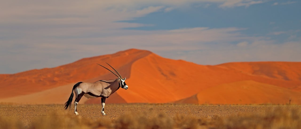 Namibia is located in southwestern Africa. It shares borders with Angola to the north, Zambia to the north-east, Botswana to the east, and South Africa to the south and south-east. To the west, Namibia has an extensive coastline along the Atlantic Ocean.