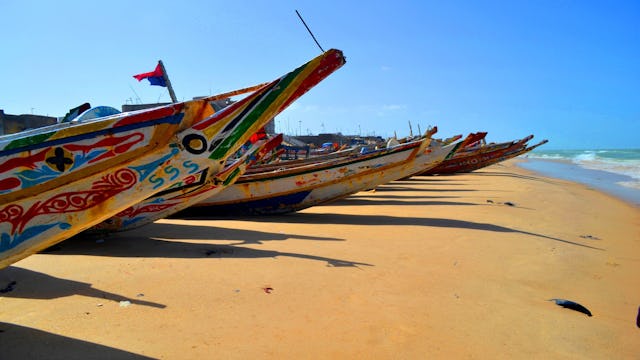 Senegal is located on the west coast of Africa. It is bordered by the North Atlantic Ocean to the west, Guinea-Bissau and Guinea to the south, Mali to the east, and Mauritania to the north. Senegal also surrounds the small nation of The Gambia, forming an enclave.