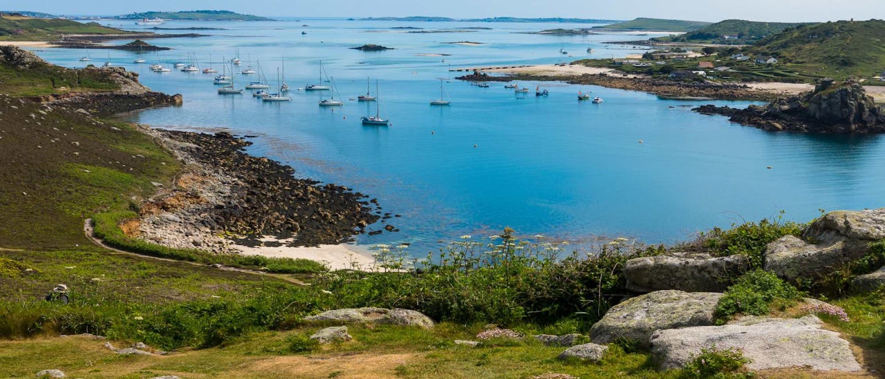 The Isles of Scilly are an archipelago situated off the southwestern tip of Cornwall, England, United Kingdom. Specifically, they are approximately 24 nautical miles south-west of the Cornish peninsula. They are a collection of about 50 small islands and many more islets sitting southwest of Cornwall, England, 25 to 36 miles off Land’s End.