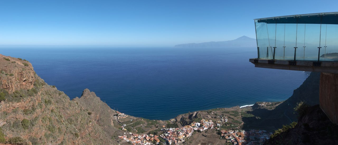 Nestled high above the town of Agulo on La Gomera island, the Mirador de Abrante offers a staggering panorama of the Atlantic Ocean and Tenerife’s Mount Teide in the distance. Known as one of the most spectacular viewpoints on the island, this vantage point sits around 625 meters above sea level. Mirador de Abrante also features a glass skywalk, a protruding platform with a glass floor, which provides visitors with the thrilling sensation of floating above the picturesque valley and sea underneath.