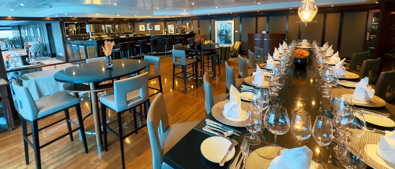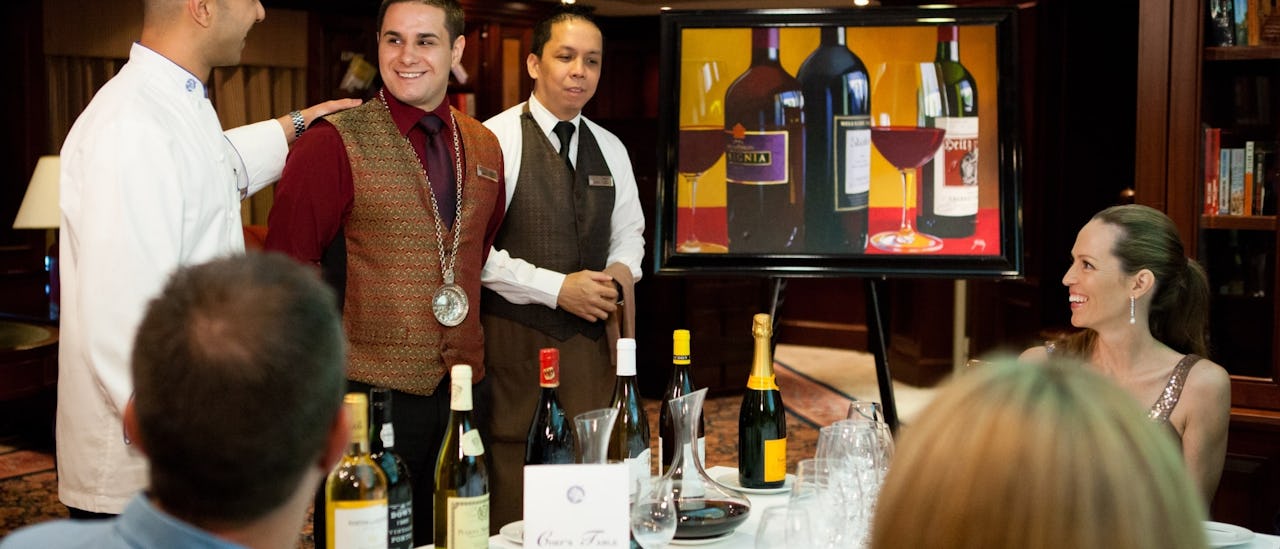 Located in Prime C, you can join Azamara Journeys' chef and other guests for an enjoyable evening filled with laughter and entertainment. Indulge in a delightful seven-course meal, accompanied by a refreshing glass of prosecco and the ideal wine pairing. There is a set specialty fee for this experience.