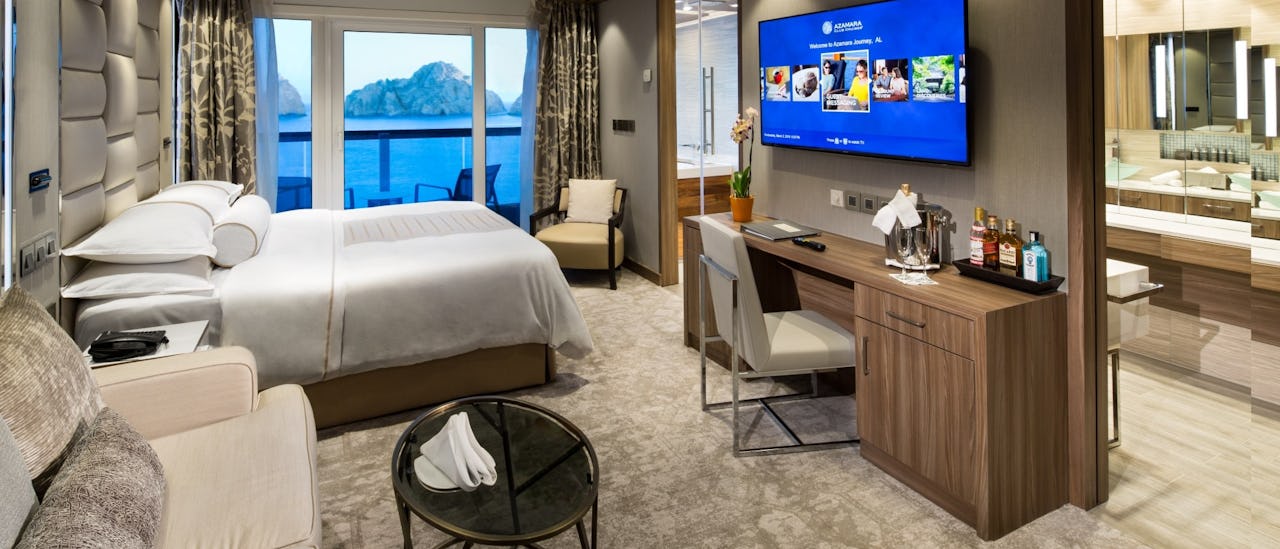 Experience the finer details found in Azamara Onwards staterooms and suites, which offer the elegance and amenities reminiscent of a boutique hotel. Each stateroom includes cosy cotton robes, complimentary bath products, and the option to enjoy the refreshing ocean breeze from a private veranda. Suite guests are treated to additional perks and benefits, along with contemporary and spacious accommodations. Don't forget, no matter where you decide to stay, 24-hour room service is always available.