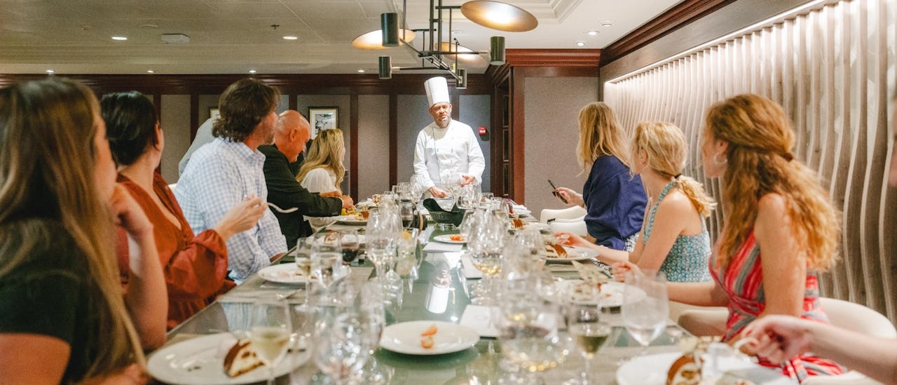 This experience is well worth the speciality fee. Situated in Prime C, join a senior chef and fellow guests for an evening of laughter and entertainment as you delight in a seven-course meal paired with a crisp glass of prosecco and the perfect wine.