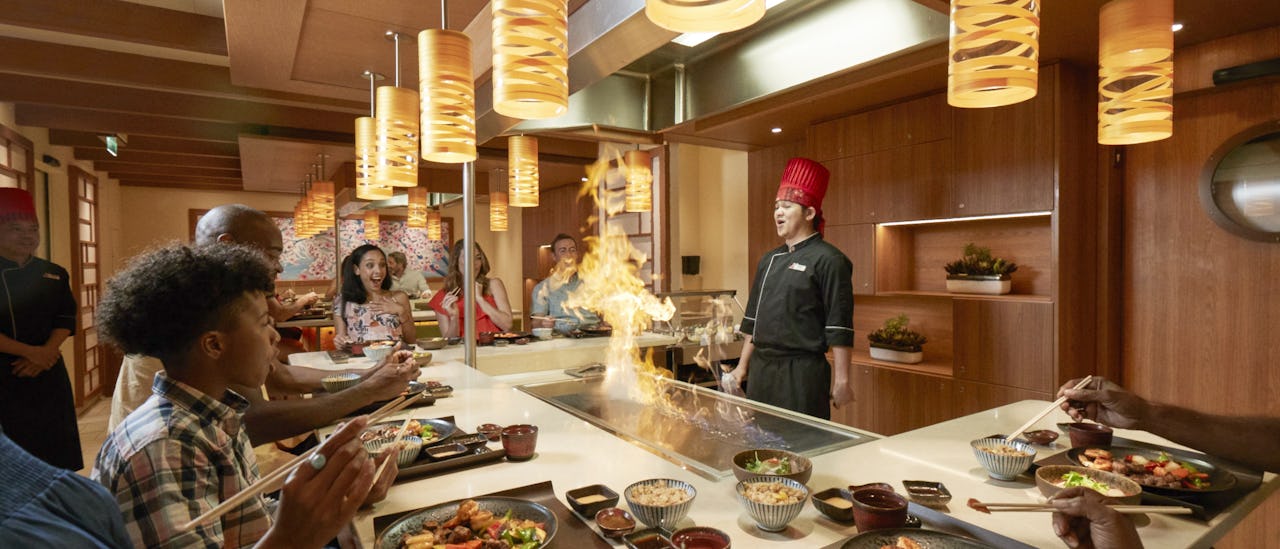 At the Lido pool deck, a range of restaurants offer everything from hamburgers to seafood.