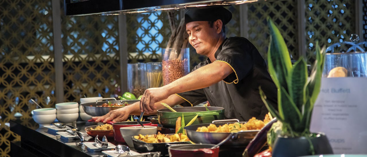 All buffet meals feature an action station where you can watch as your food is prepared in front of you