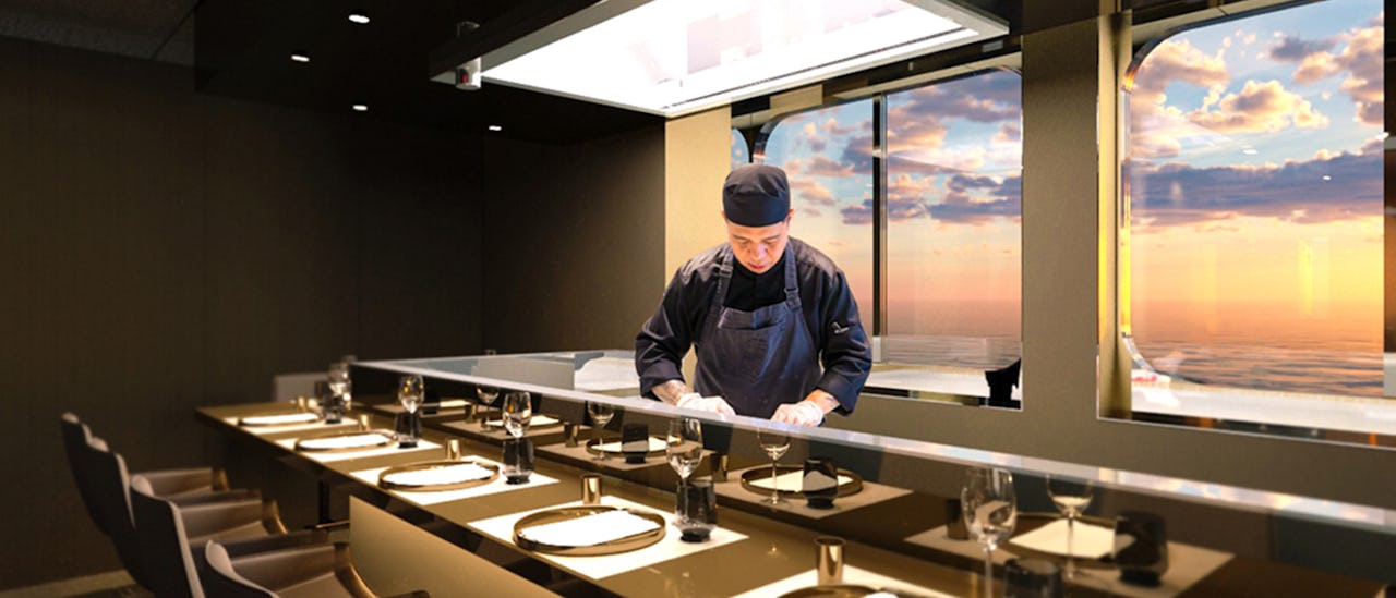The Observation Sun Deck at the bow offers sun beds, loungers, and a Spa Pool for ultimate relaxation. Stay active with the gym and exercise classes. The Sky Bar on the Sky Deck is an outdoor poolside bar serving drinks and light bites, with comfy seating, an infinity-style Spa Pool, and three private cabanas for rent.