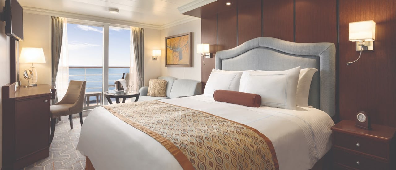 Marina offers a range of elegant suites and staterooms featuring a separate seating area, walk-in closet, marble bathroom with a bathtub and a private veranda. Accommodation ranges in size and premium amenities provide guests with a comfortable experience. The Owners Suite, Vista Suite, and Oceania Suite are particularly impressive, offering even more space and luxurious features.