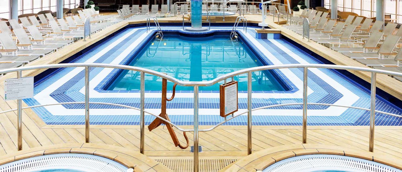 No matter the weather, the Neptune Pool on Arcadia offers an all-weather swimming experience thanks to its unique SkyDome. This sliding glass roof can be retracted during sunny days to let the sunshine in or kept closed during cooler temperatures, ensuring guests can enjoy a delightful swim no matter the climate.