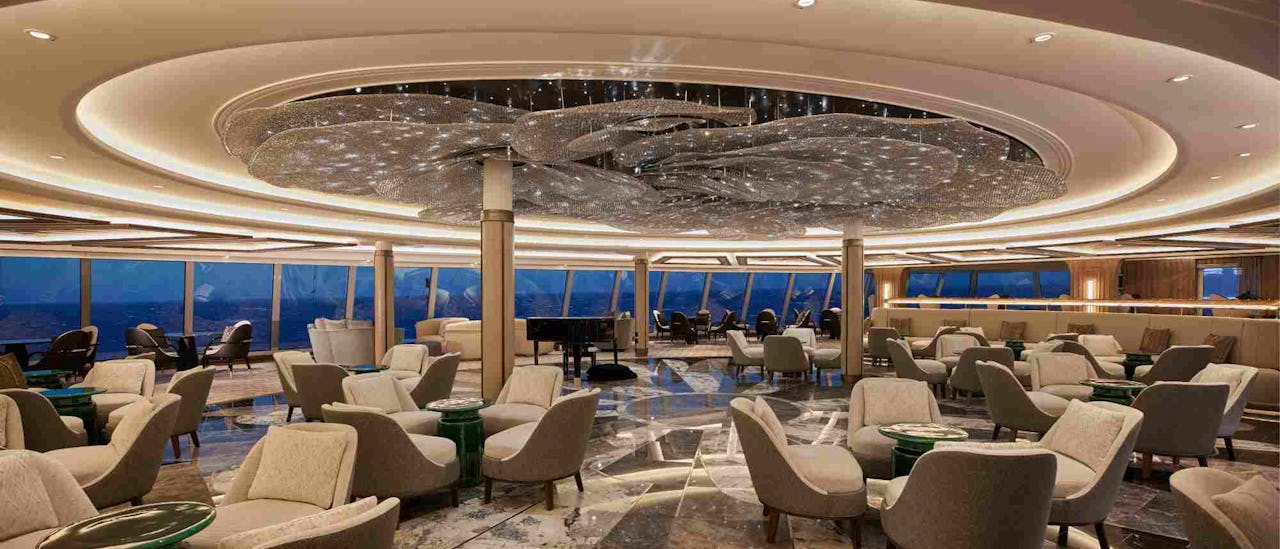There are several bars and lounges on Seven Seas Grandeur™ that serve as a place to relax and unwind of a daytime, and to socialise over drinks and live music of an evening. From afternoon tea at Meridian Lounge to a live pianist surrounded by ocean vistas in the Observation Lounge.