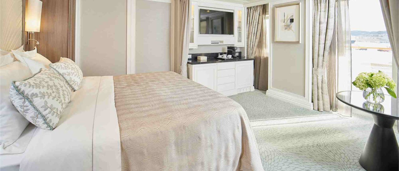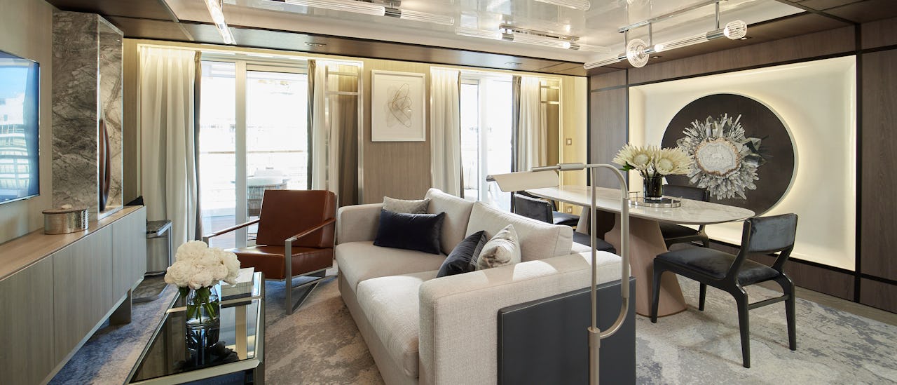 There are ten categories of exceptional suites to choose from on Seven Seas Grandeur™, all including a private balcony, sitting area and all the amenities you need to feel spoiled. From lavish bath products and plush bathrobes to an in-suite mini-bar, free laundry service and 24-hour room service.