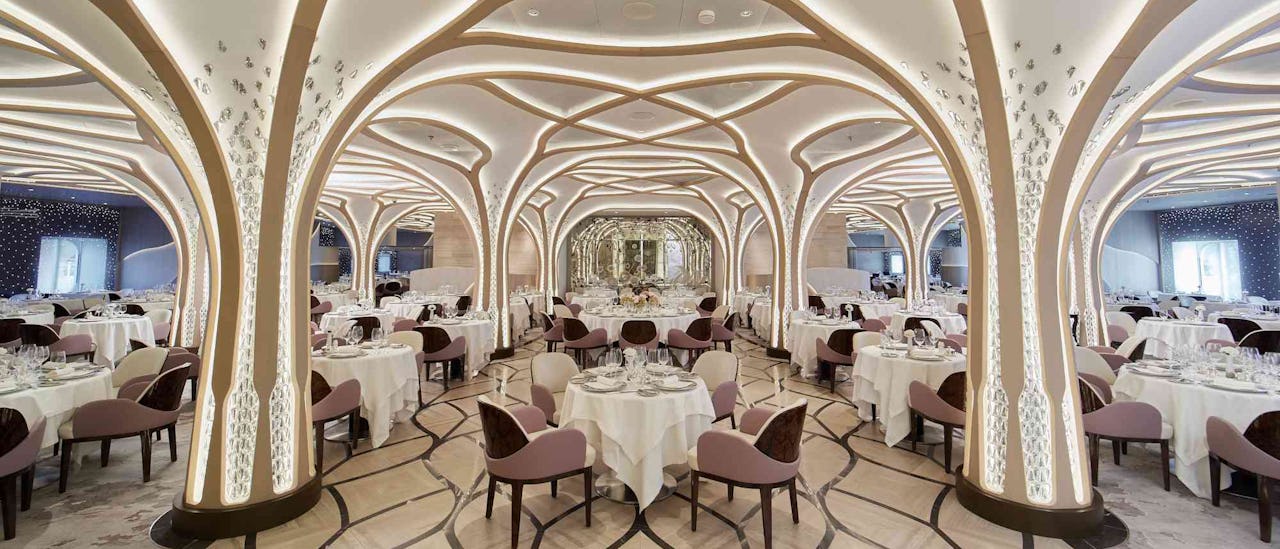 From the moment you step aboard discover transformative spaces that resemble the leading hotels in the world. From unrivalled spaces such as an expansive spa and grand atrium to incredible art installations including the only Fabergé egg exhibit at sea. Modern style meets sophistication throughout, from the futuristic design of the main dining restaurant Compass Rose to its Versace dinner sets and plush seating. All suites deliver the perfect balance of luxury and comfort from a private veranda to the finest bedding and L'Occitane toiletries.