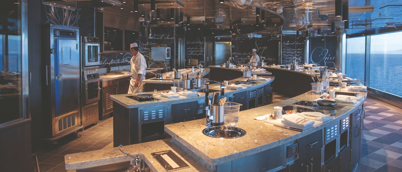 Unique to Seven Seas Grandeur™ and Seven Seas Splendor®, The Culinary Arts Kitchen is the perfect place to expand your cooking skills. 18 state-of-the-art individual cooking stations overlook ocean vistas, the perfect place to prepare a variety of delicious dishes with the help on expert chefs.