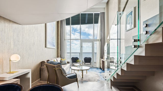 The Royal Loft Suite is an indulgent and lavish suite in the Royal Caribbean® fleet. It offers private spaces for up to six guests, a private balcony with a whirlpool, and exclusive access all over the ship. Enjoy the ultimate luxury and relaxation with a dedicated Royal Genie to cater to your every need.