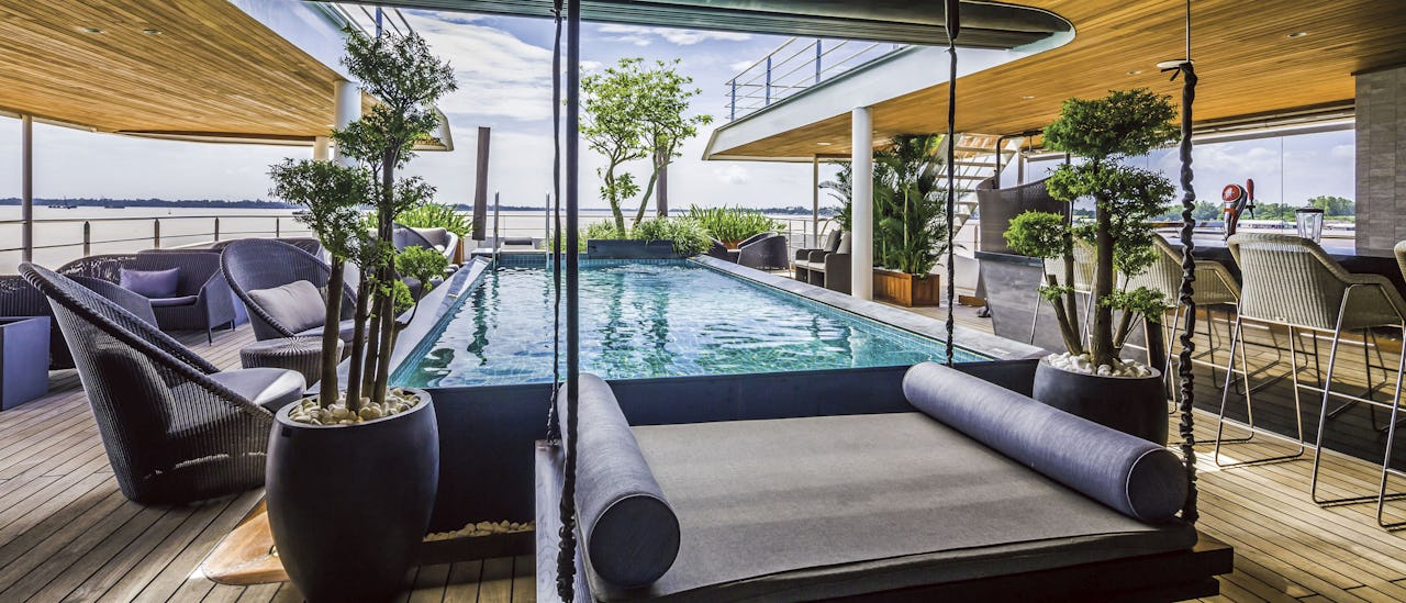 Explore the light-filled public spaces and lounge areas, where you can relax, indulge and dream, as the magical Vietnamese and Cambodian landscapes float by. You can also join daytime activities as a galley or bridge and engine room tour, Asian cooking and tropical fruit tasting.