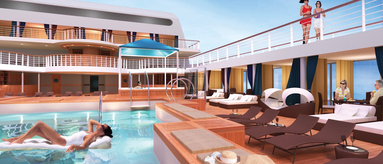 All suite accommodation makes for the perfect getaway to truly unwind, as 90% of the staterooms on board are veranda cabins offering superb views out to sea.