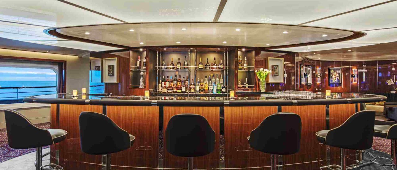 There are no bars tab because complimentary fine wines and premium spirits are available throughout your voyage. All suites include a bottle of Champagne on arrival and an in-suite mini-bar stocked with your preferred beverages.
