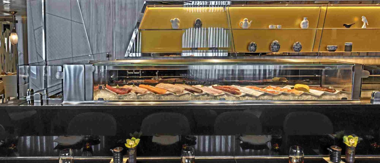 Sushi is a modern Asian-inspired restaurant unique to Seabourn Ovation and Seabourn Encore. The menu features authentic cuisine such as fresh tuna, Hamachi, shrimp and other products directly from Japan.