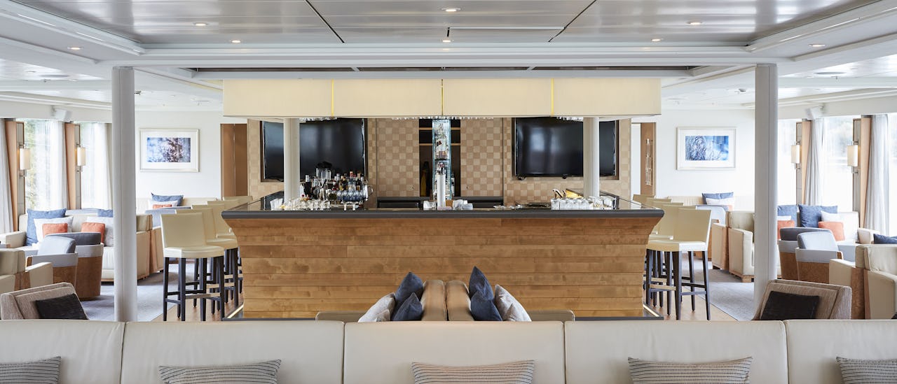 Enjoy the Lounge & Bar with panoramic views, unwind in the onboard Library and discover unique finds in the shop!
