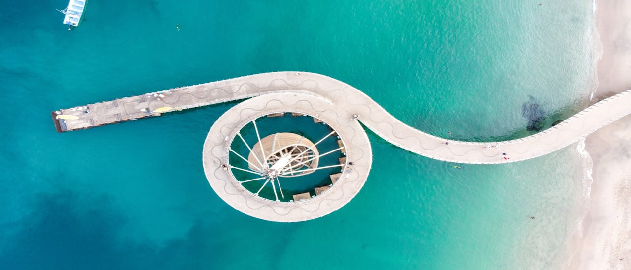 Los Muertos Pier, located in the heart of Puerto Vallarta, Mexico, is a vibrant seafront landmark. Known for its distinctive, sail-like structure, this pier extends into the beautiful Banderas Bay. It serves as a point for water taxis and boat trips, and is surrounded by bars and restaurants. Whether it's for a water adventure or a scenic sunset, Los Muertos Pier is a must-see in Puerto Vallarta.